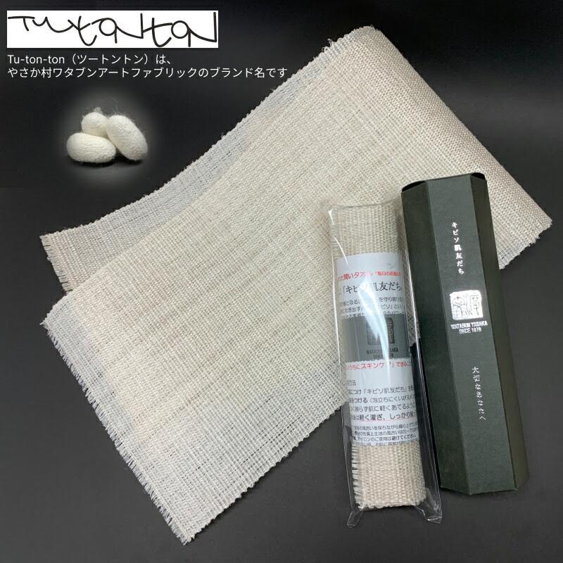 という思いや願いが込められたTu-ton-tonの商品には、肌ケアを目的とした「キビソ肌友だち」をはじめ、手紡ぎの本真綿(正絹)で織り上げた大判の「あったかショール」や「本真綿のマフラー」があります。